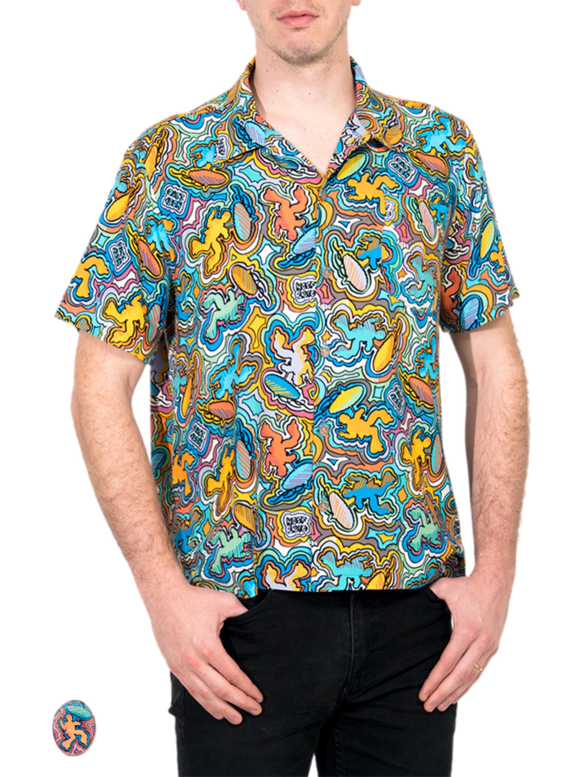 This Hawaiian-style camp shirt dresses up, down and all-around. A core fashion item for every wardrobe and perhaps the most famous shirt of its kind in the world. Each fabric is complemented by thematically matching custom buttons that raise each shirt to another level. Made in the USA.