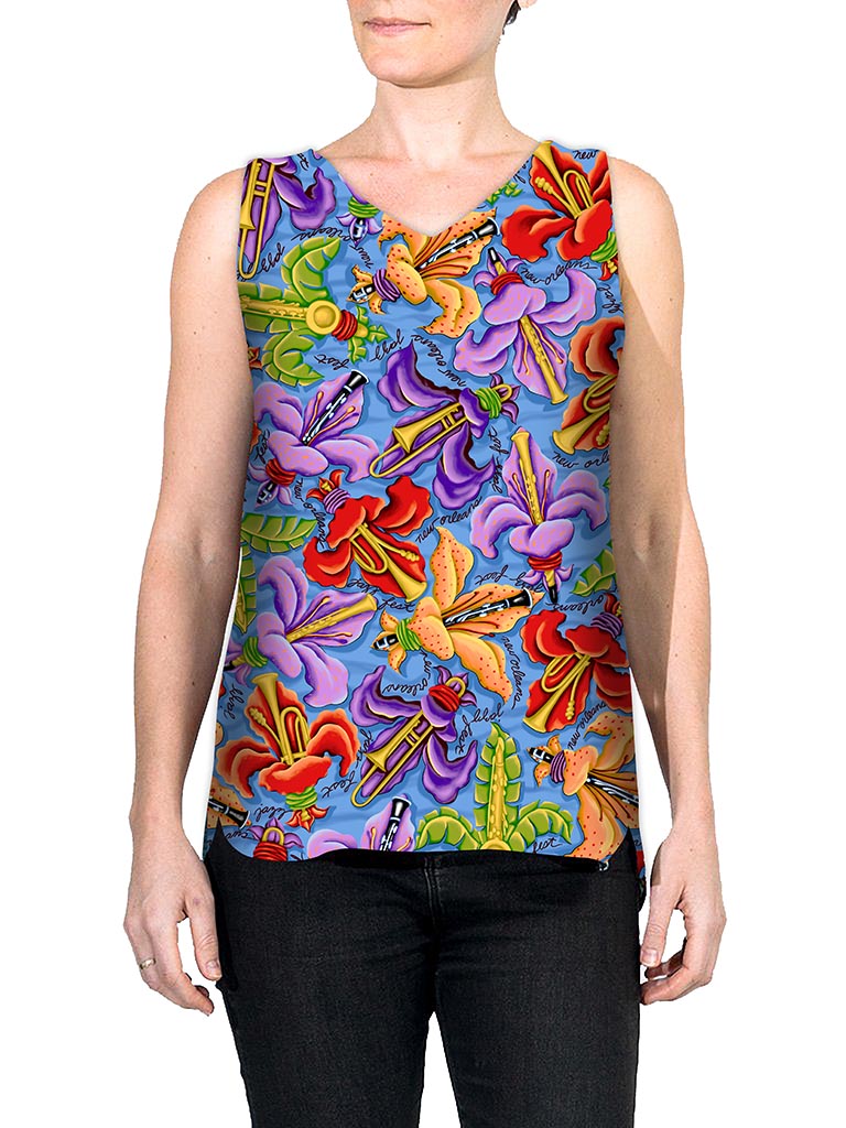 Our Top It Off Cami is cut longer & looser for breezy comfort. Available in SunDaze, Quarter Wrap, Music Lines, BeeBop Buzz, Logo-a-Gogo, Moonlit Magnolias, Fleur De Jazz, Gator! and Crawfish By You.