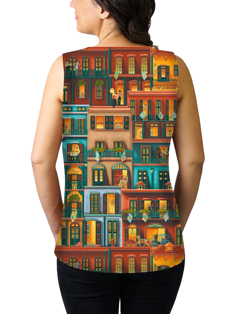Our FormFit Camisoles are cut shorter to the hip and have a side zipper to achieve a flattering taper in the waist. Available in Red Beans & Rice, Jumble YaYa, NOLA Camo, What-a-Melon, Stellar! Streetcar Famed Attire, Jazz Fest Rag, Vintage Vinyl, and Tricentennial Map.