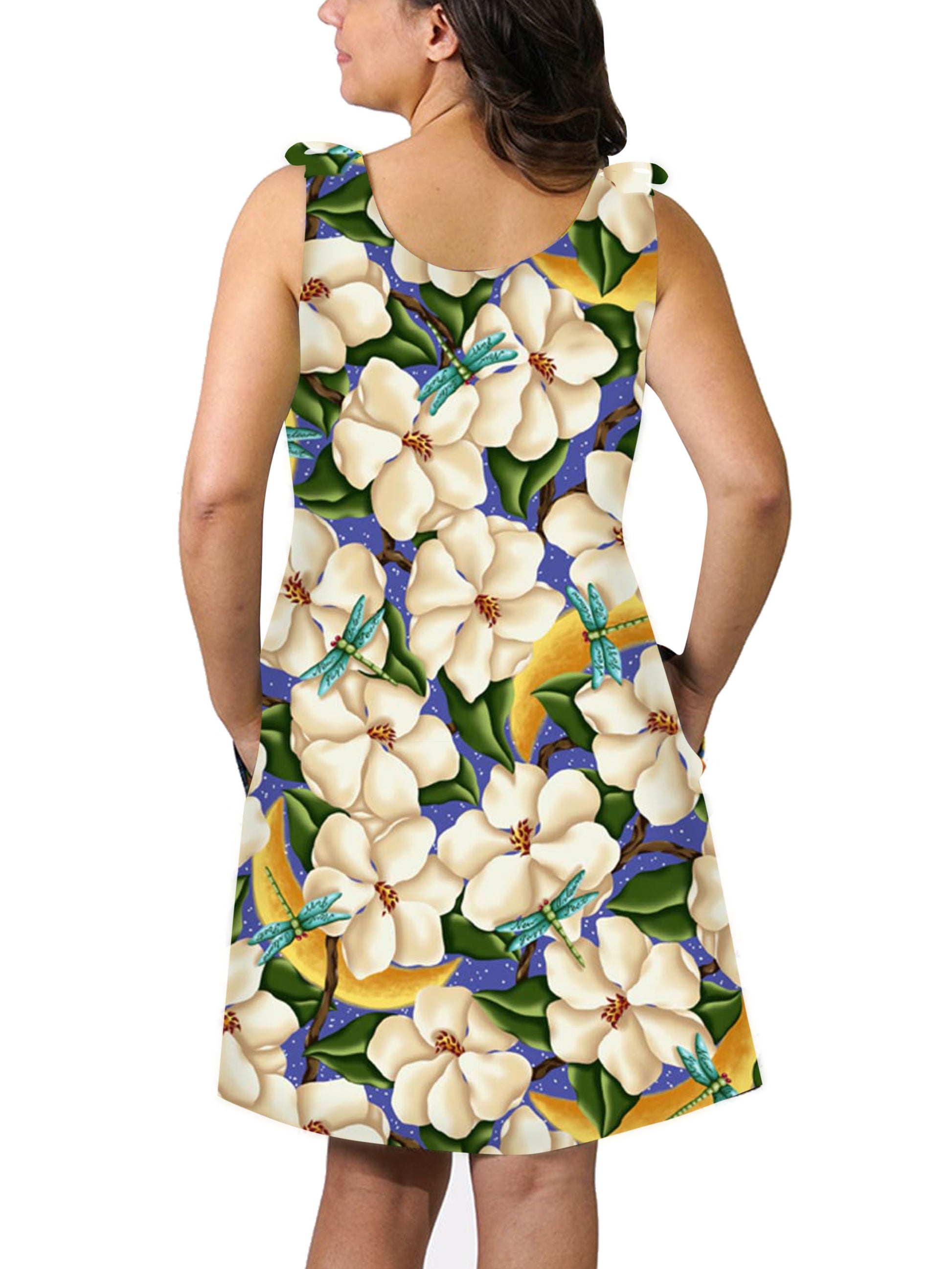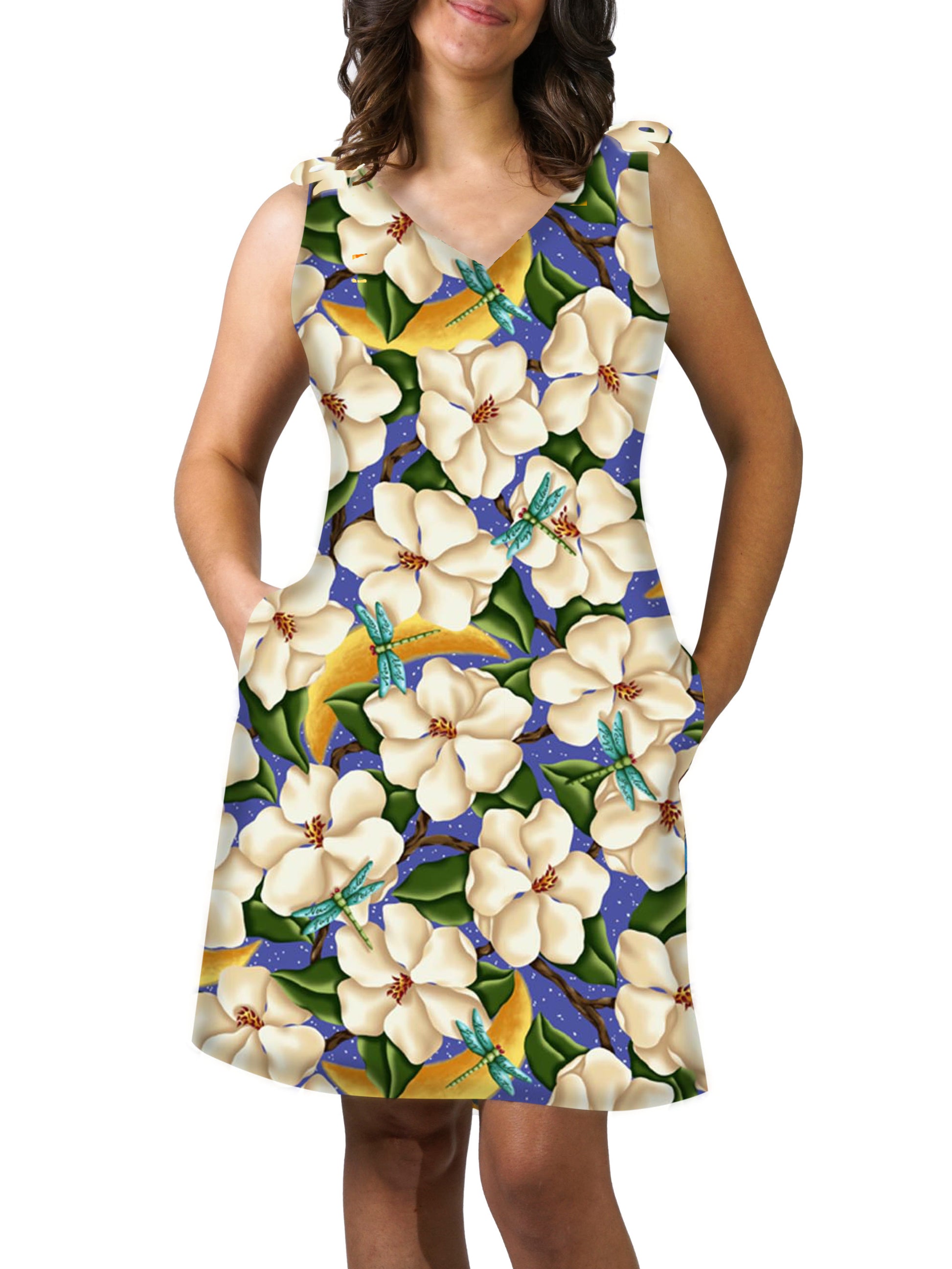 Global warming has nothing on summer in New Orleans. Our stylish dress is elegant; a delight to behold and a joy to wear. This perfect above-the-knee 3-season dress is styled with practical simplicity and timeless fashion. Shoulder ties provide a pretty detail that allows this sheath silhouette to fit like it was made for you. This cool BayouWear® dish flatters every body.